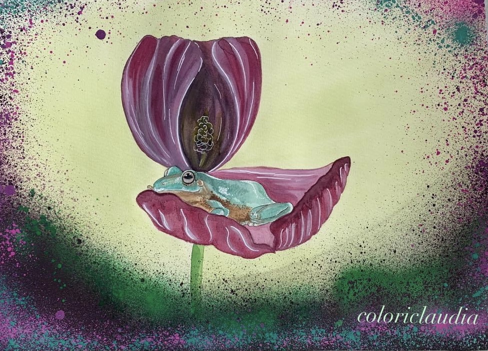 FROSCH IN DER BLÜTE 30X42CM VERKAUFT