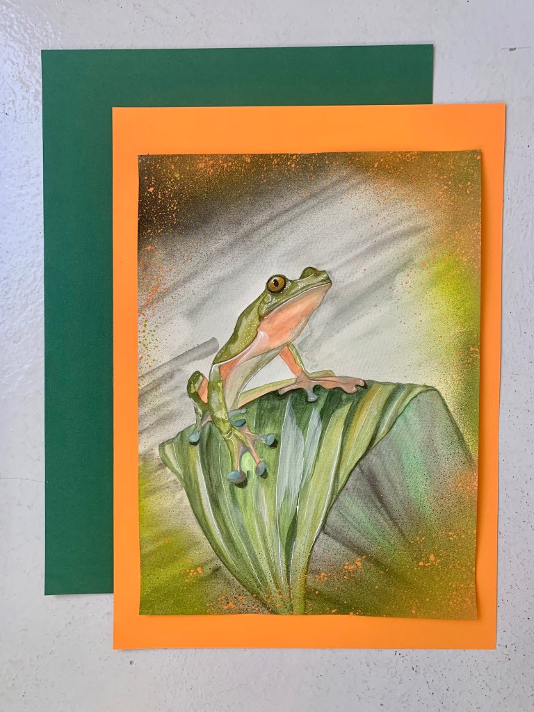 FROSCH AUF BLATT 30X42CM VERKAUFT