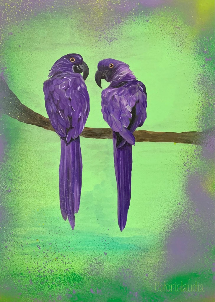 LILA PAPAGEIENPAAR 34X48CM ACRYL